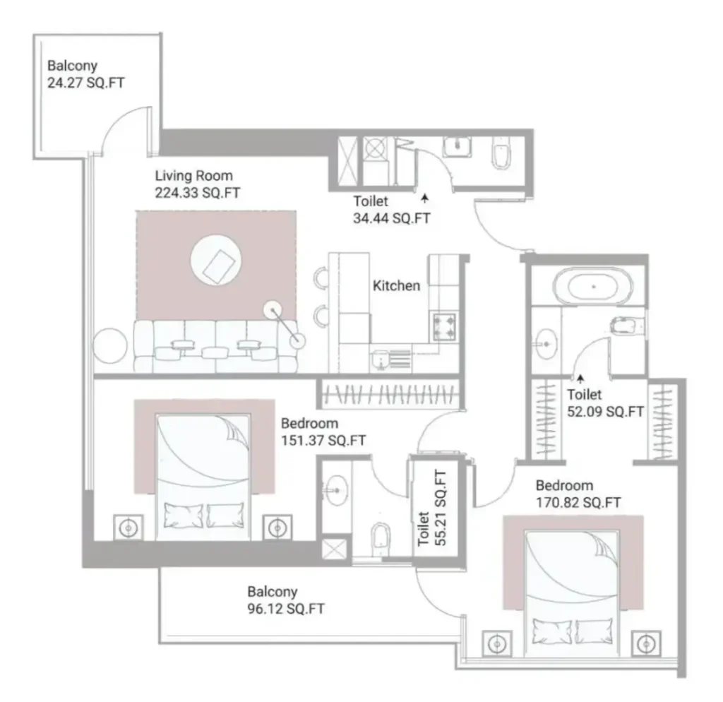 2 bedrooms in Bayz 101